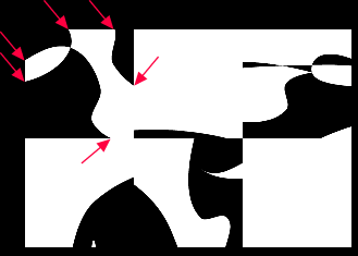 First, fire up the Hexagrammaton. Then, stare at it for a goodly while, thinking about what you'll be up to in 109,909,688 years. When things seem right, grab a single frame by pressing the Print Screen key. (For Apple, Command-Shift-3.) Print the frame, or paste it into a program such as a wordprocessor or a paint program. For each of the six squares, count how many times a line intersects the edge of the square. For example: The top left square below has 6 points where a line intersects the edge of the square. | |||||||||||||||||||